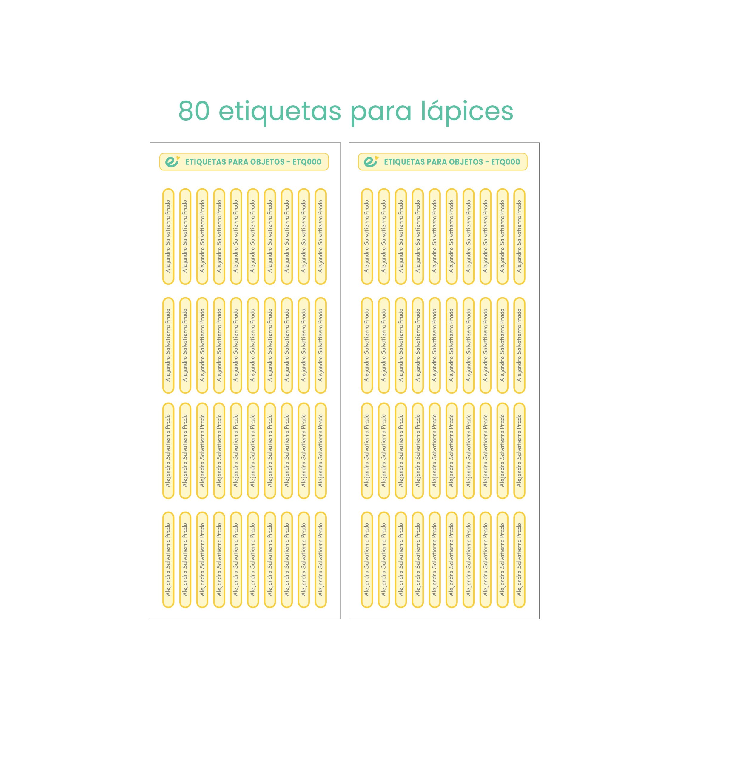 02 láminas, donde tendrás en total 80 etiquetas de 4.5 x 0.50 cm En diferentes combinaciones de colores. Ideal para etiquetar lápices, colores, plumones, reglas, cepillo de dientes, etc.